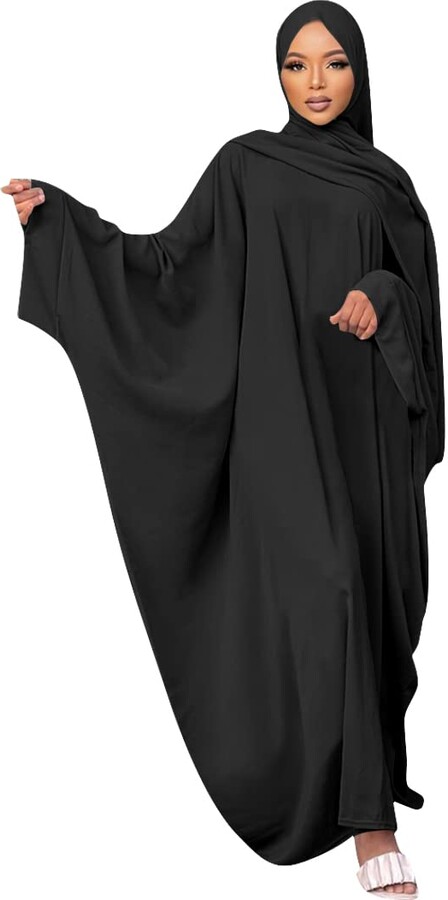 IMEKIS Muslim Dress for Women Hijab Abaya Batwing Sleeve Islamic Maxi Prayer Robe Plain Loose imanis hijab