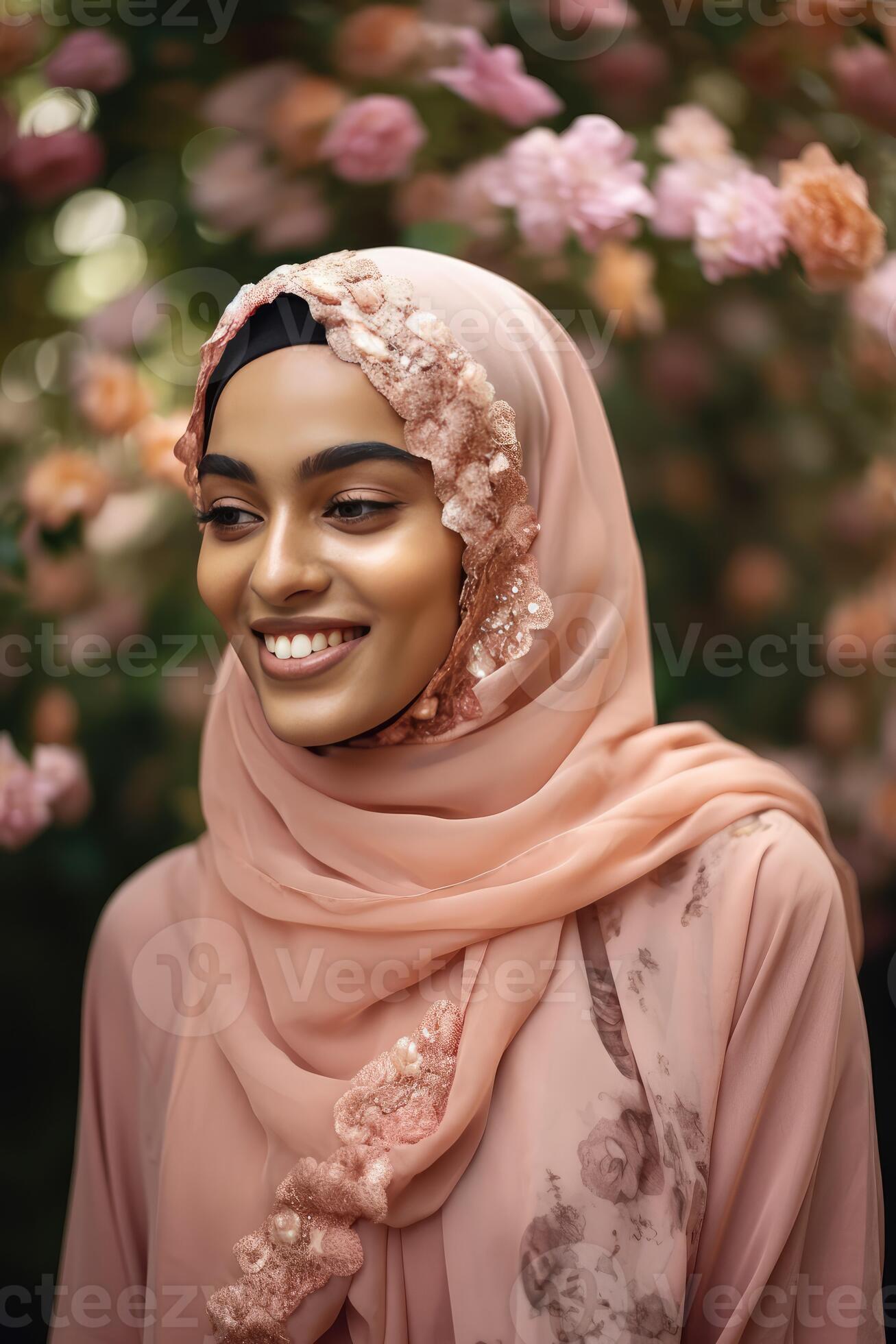 Beautiful Muslim Young Girl Wearing Hijab on Blur Floral Background, . 24291557 Stock Photo at muslim wearing hijab