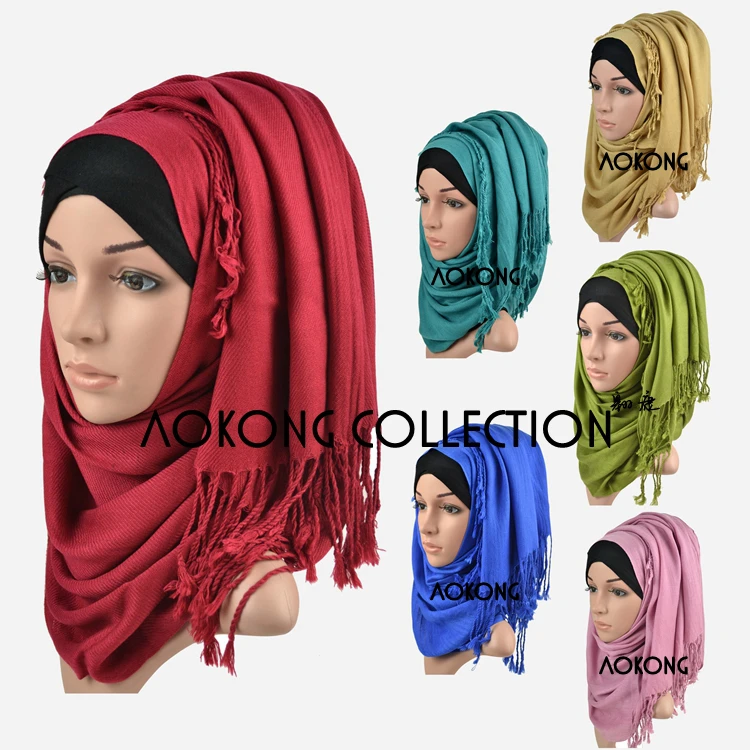 10pcs women hijab scarf acrylic solid plain twill pashmina hijabs long shawls ladies muslim sleeves for hijabis