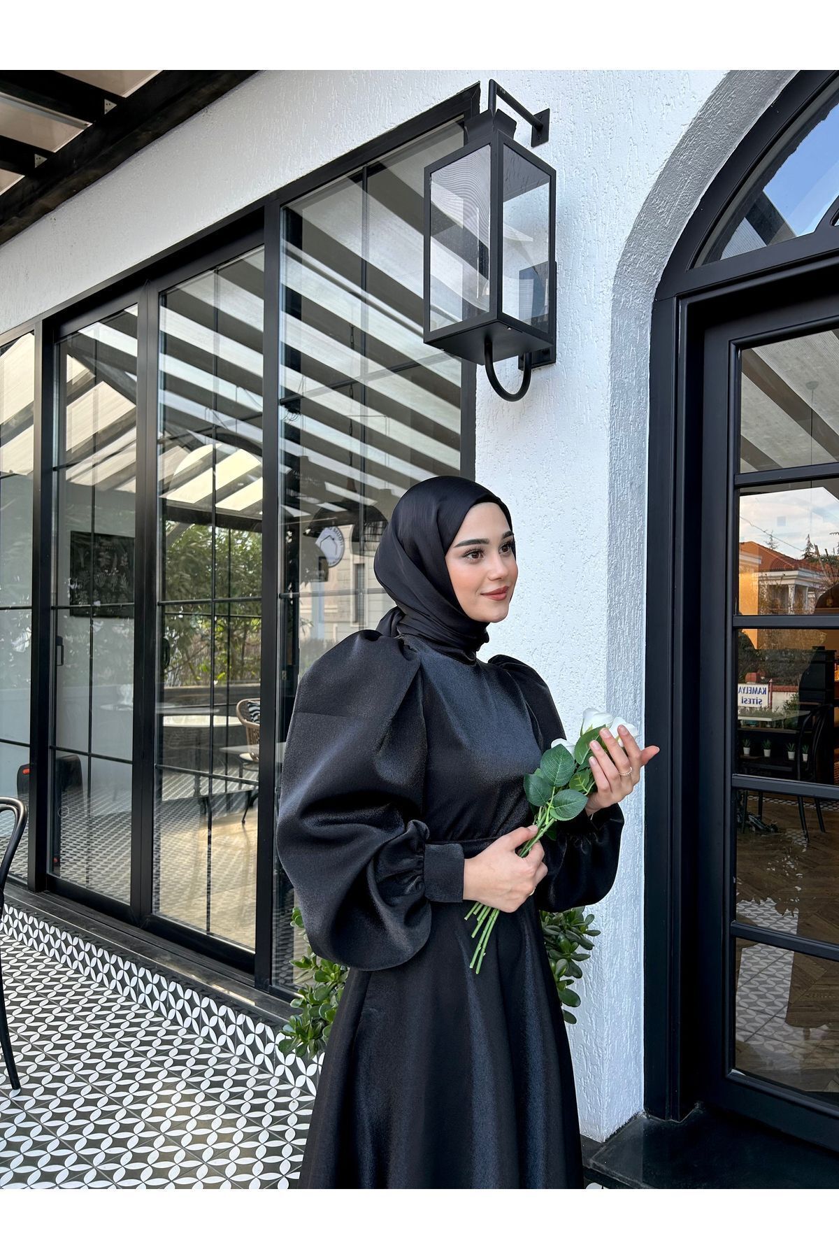 By Atelier Black Hazel Hijab Evening Dress- Trendyol atelier hijab