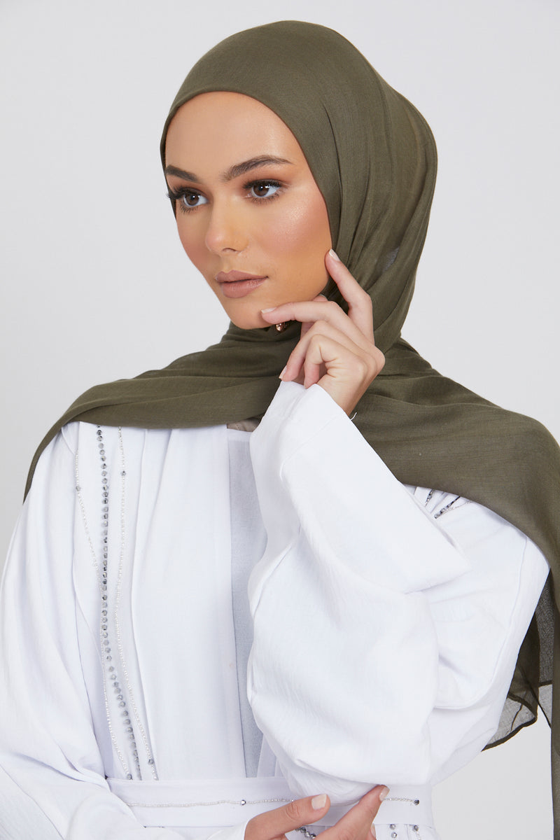 Premium Modal Matt Hijab - Smokey Olive molto hijab