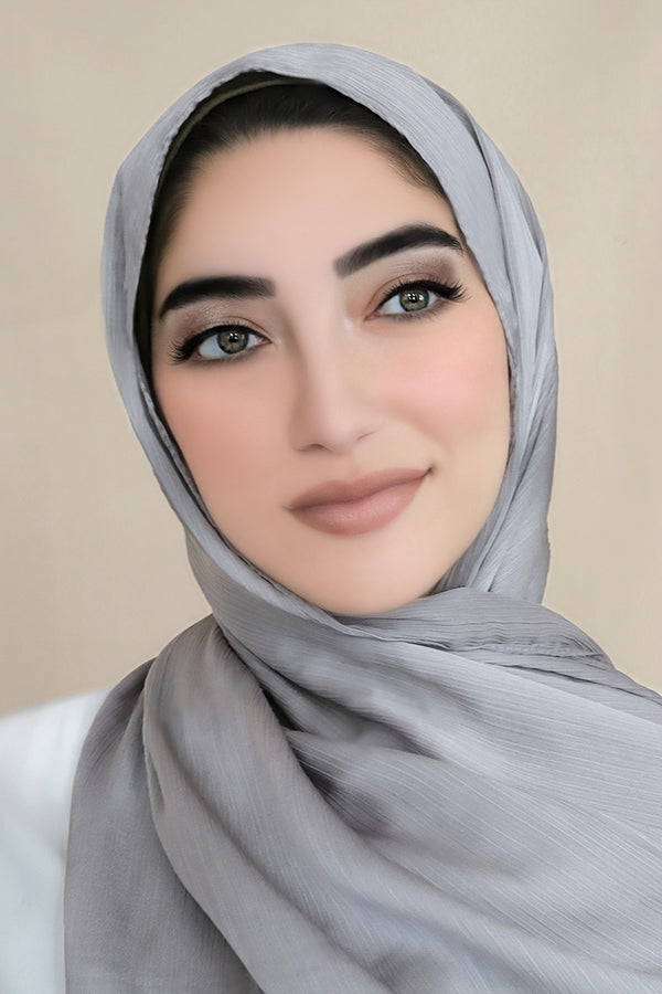 Satin Crinkle Hijab-Gray gaya hijab crinkle