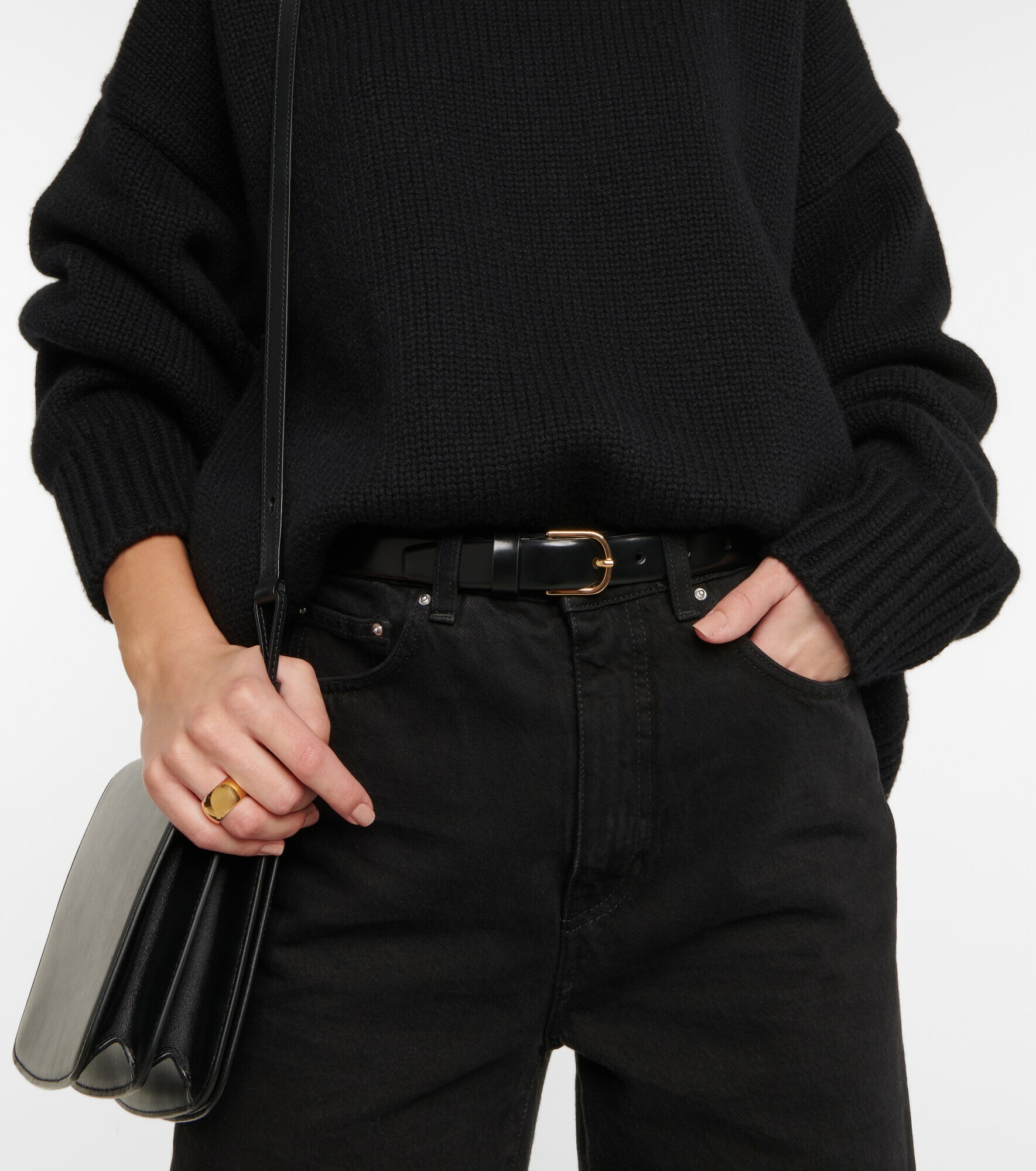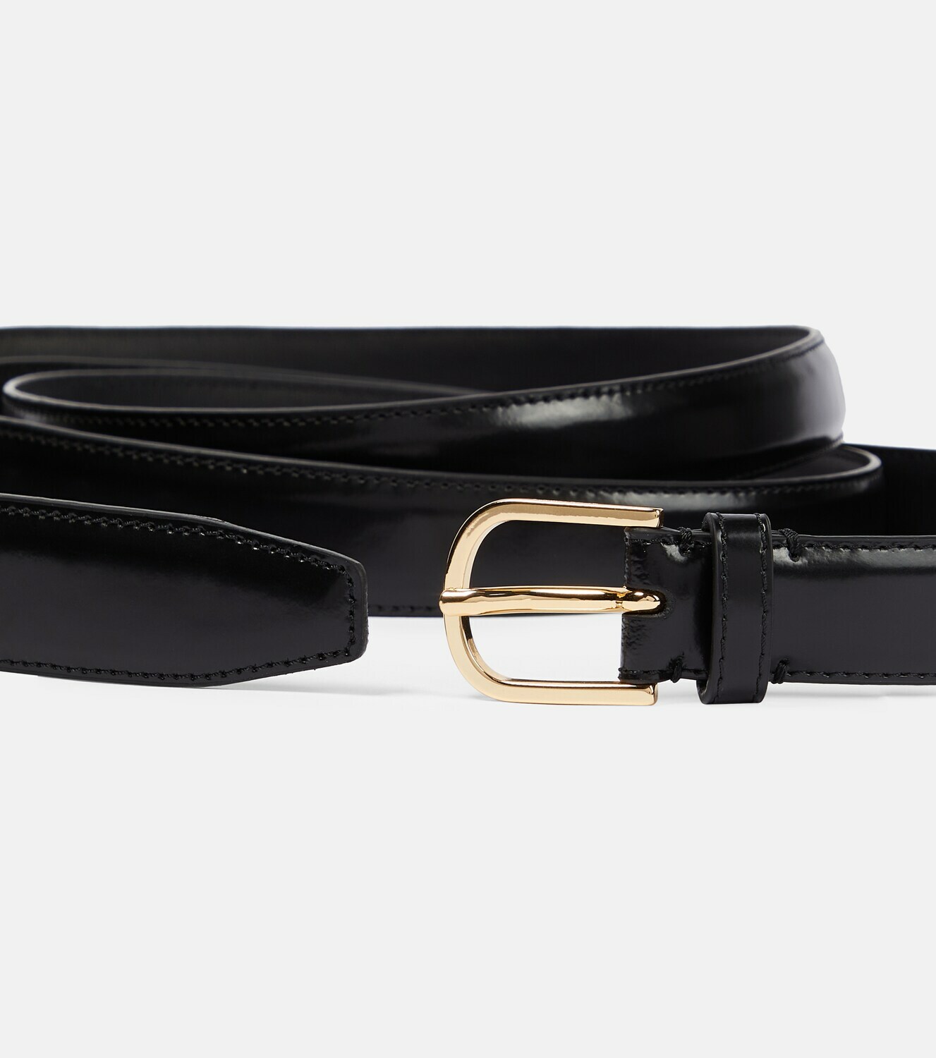 TOTÃME Black Slim Trouser Leather Belt - Black 200 | Editorialist toteme belt