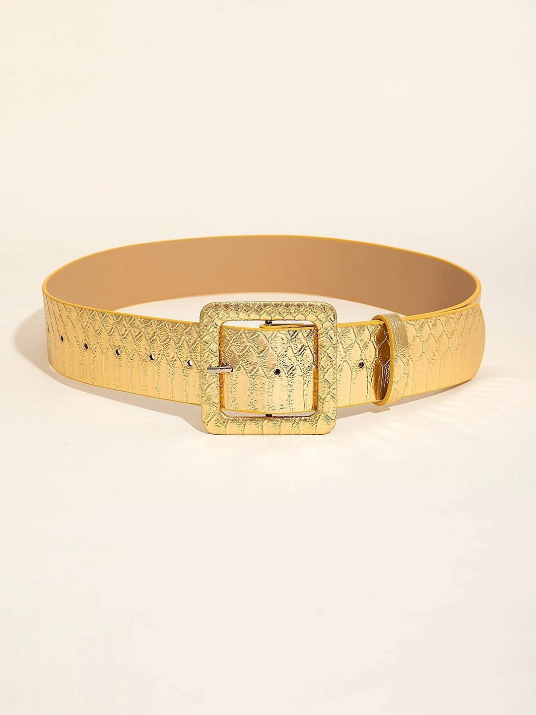 Fiori Wide Gold Buckle Black Thin Women's Belt, Coat Belt, Dress Belt, Shirt Belt- Trendyol