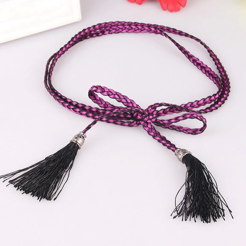 Women Girls String Waistband Women Belt Hand knit Long Leather Designer Braid Waist Belt With string belt