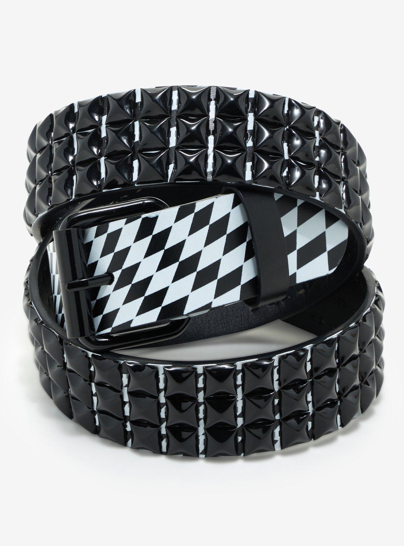 Three Row Black Pyramid Stud Swirled Checkered Belt | Hot Topic checkered belt