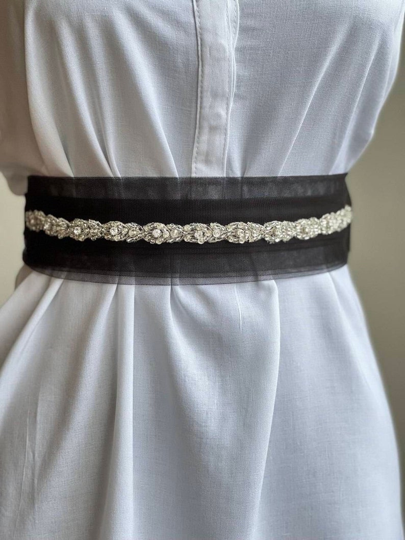 Black Dress Belt Thin Wedding Belt Pearl and Rhinestone Belt - Etsy thin black belt for dress