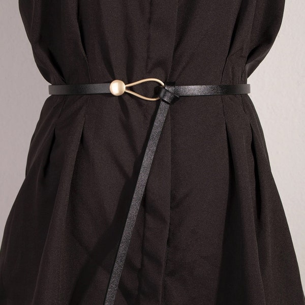 thin black belt for dress