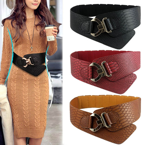 Fashion Woman Waist Belt PU Leather Snakeskin Pattern Oblique Elastic Personality Ladies Girls snakeskin belt womens