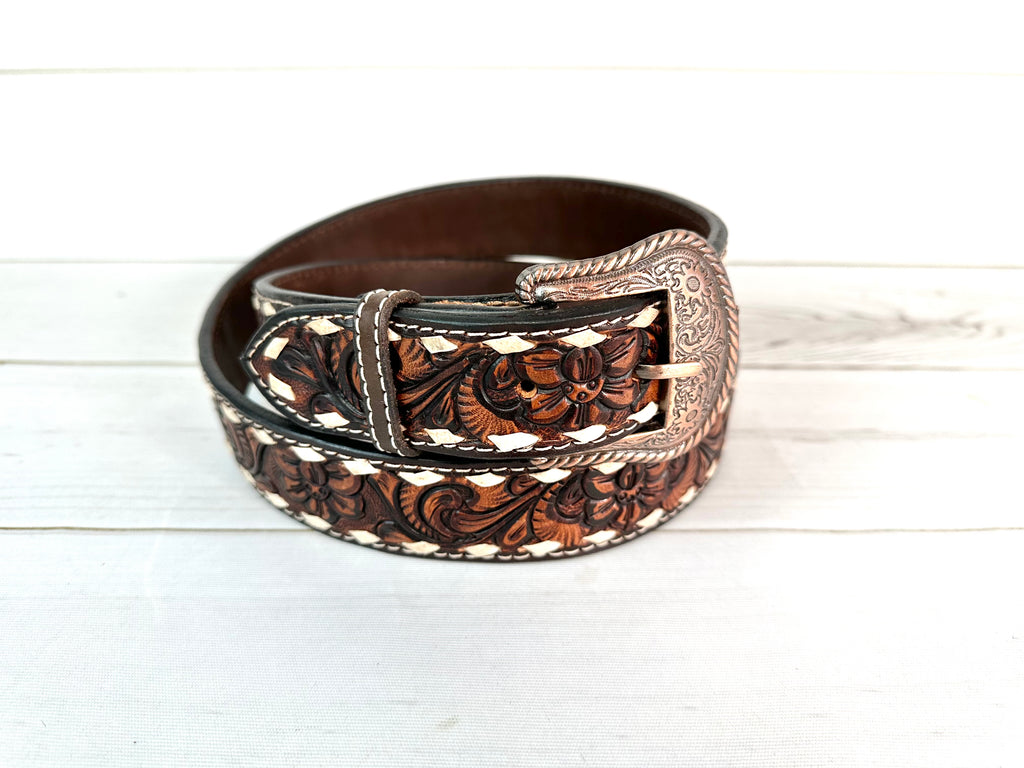 Genuine Turquoise Buckstitch Floral Leather Belt buckstitch belt
