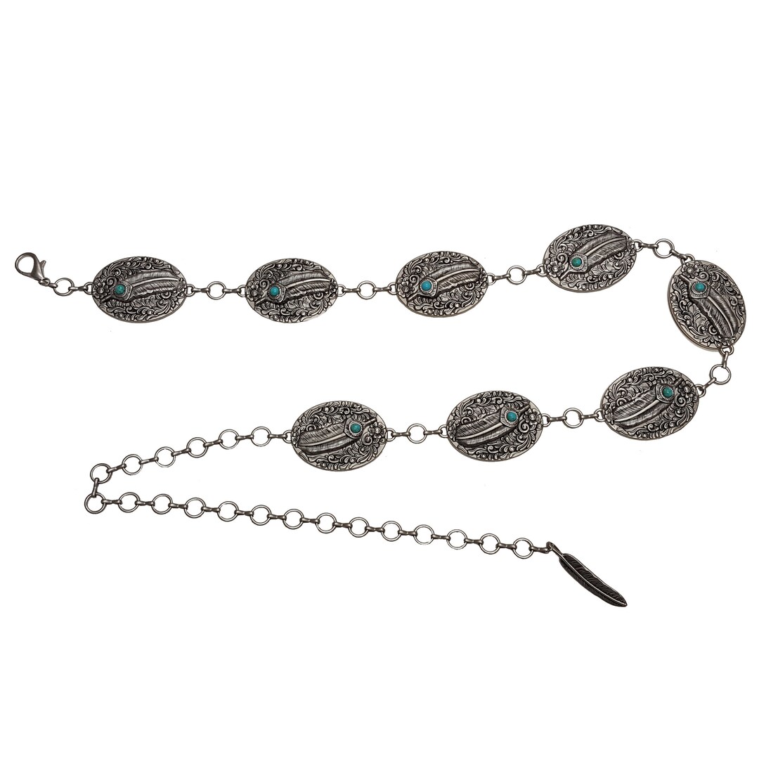 Western Oval Concho Chain Belt With Floral Design - Etsy
