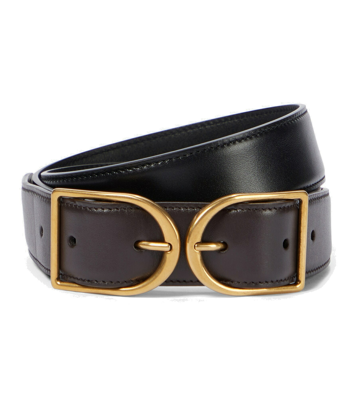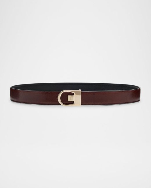 Reversible leather belt in brown - Saint Laurent | Mytheresa saint laurent reversible belt