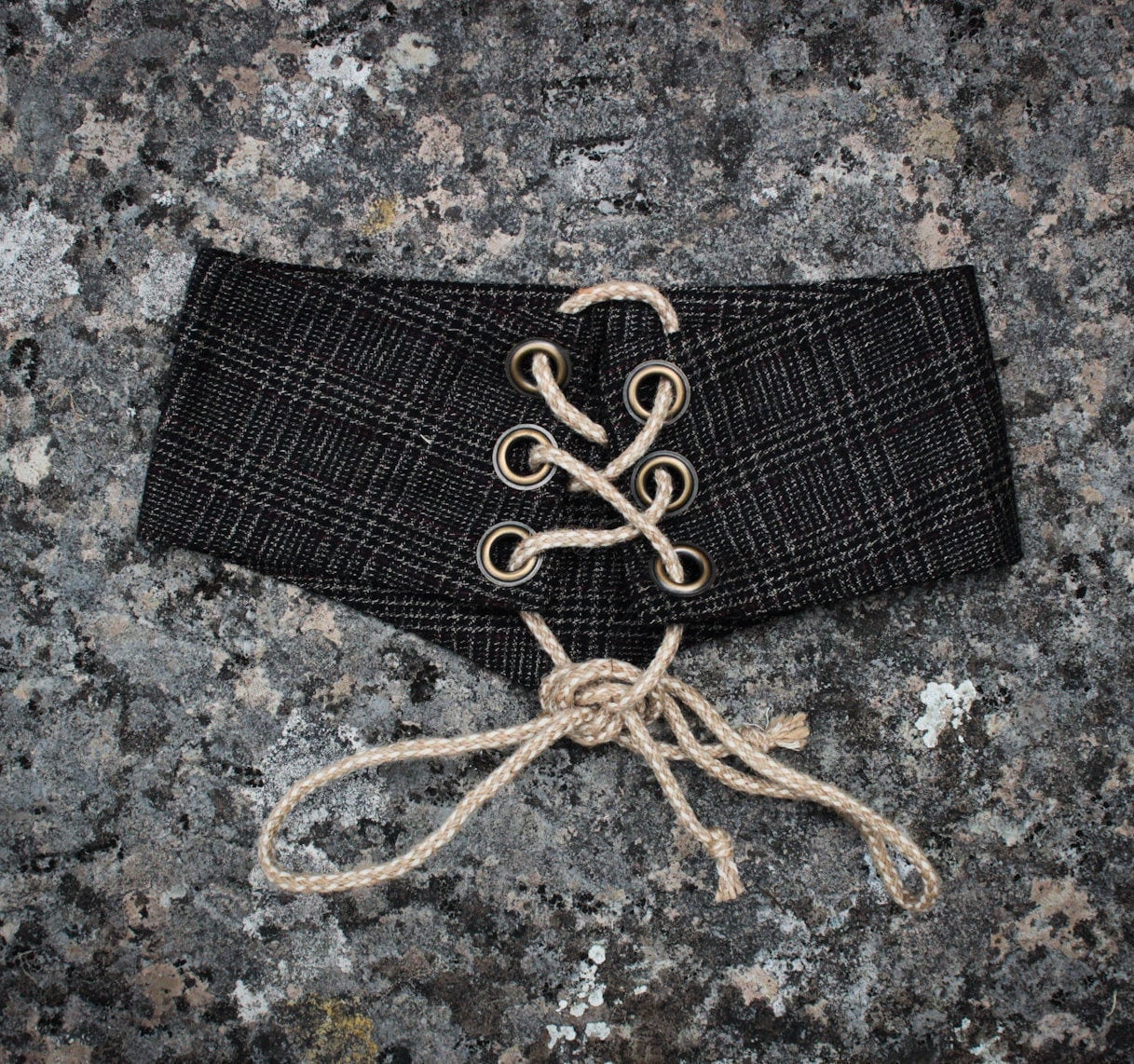 SLATE TWEED BELT | Under Bust Corset Belt, Belt, Layering Belt, Celtic Belt, Pagan Belt, Celtic