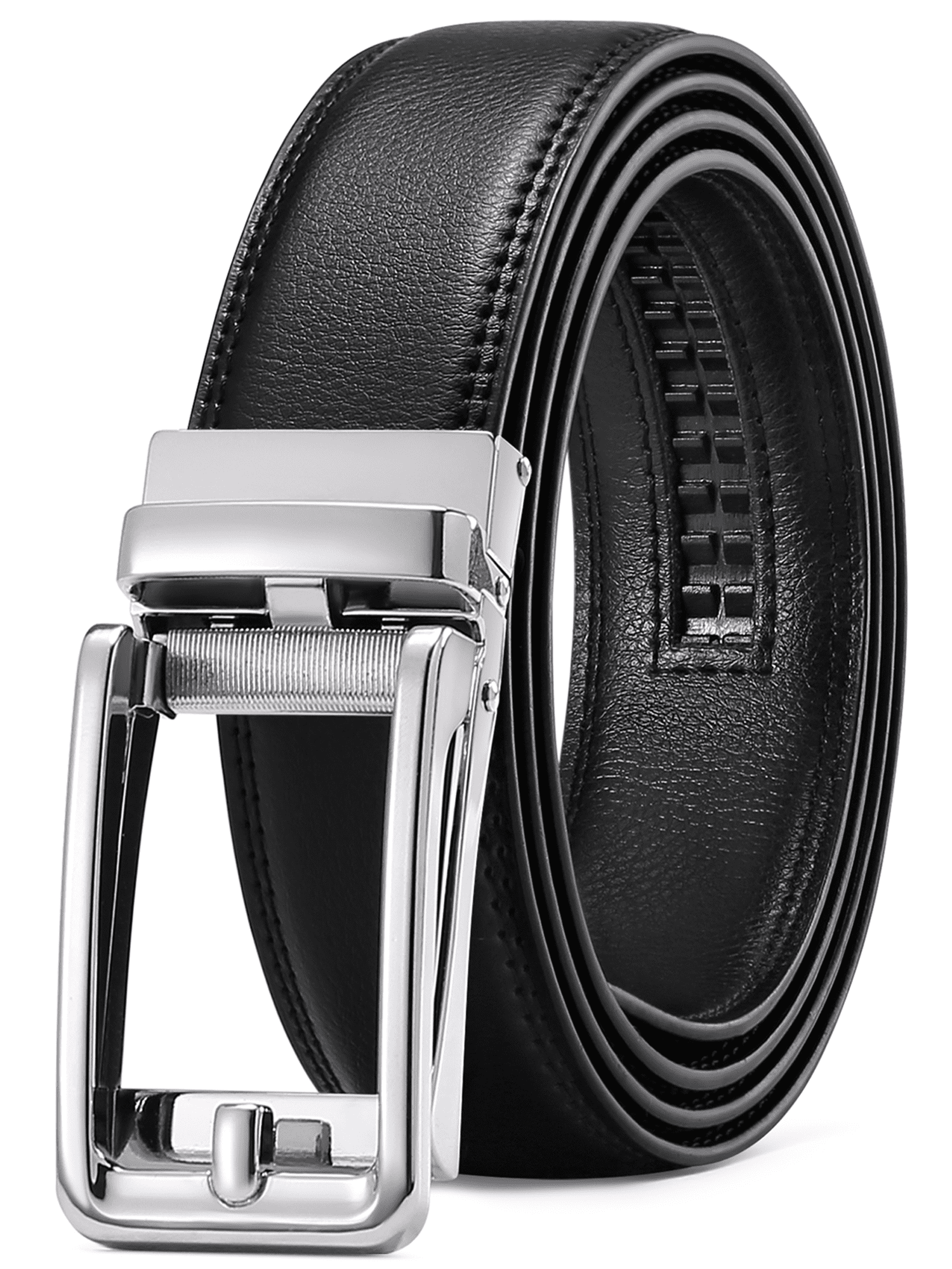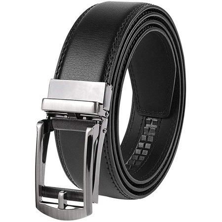 Sendefn Men's Leather Belt Automatic Ratchet Buckle Slide Belt for Dress Casual Trim to Fit with designer black leather belt