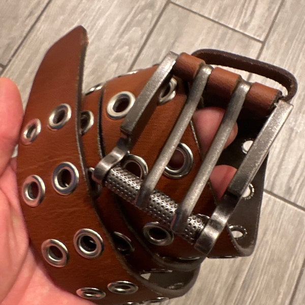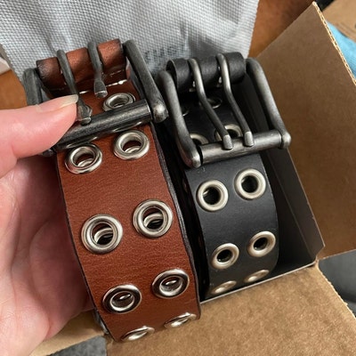 Mens Leather Belt Brown Double Grommet Full Grain Leather | Etsy grommet belt mens