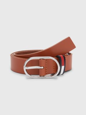 Oval Buckle Leather Belt | BROWN | Tommy Hilfiger tommy belt for ladies