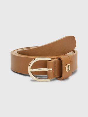 Leather Monogram Belt | BROWN | Tommy Hilfiger tommy belt for ladies