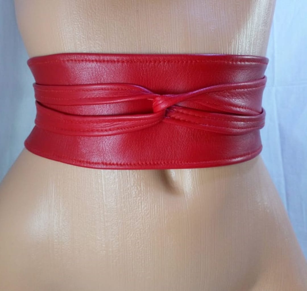 Leather Waist Obi Belt, Plus Size Corset Belt, Red Dress Obi Belt, Waist Wrap Belt, Leather Tie