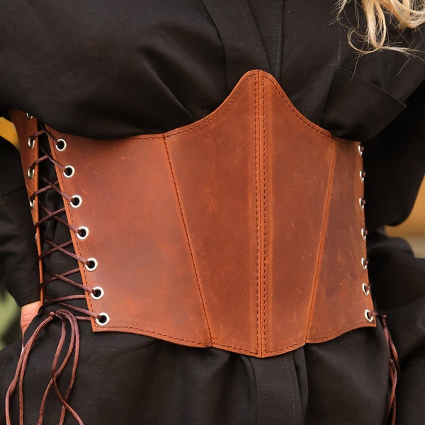 Leather Corset Belt Underbust Corset Renaissance Brown Waist - Etsy | Corset underbust, Looks underbust corset belt plus size