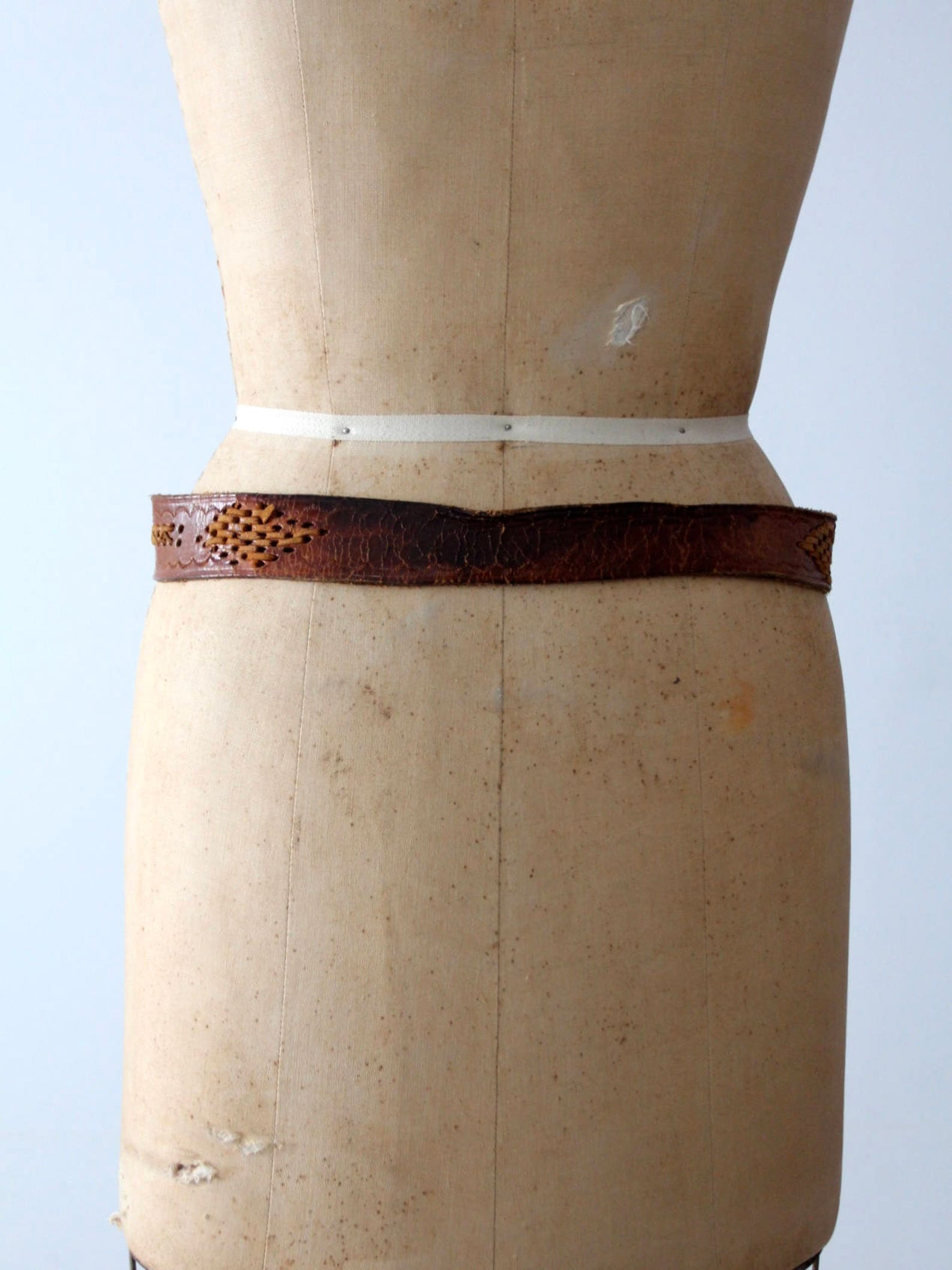 Vintage 60s Leather Belt Brown Leather Stitch Diamond Belt - Etsy 60s belt