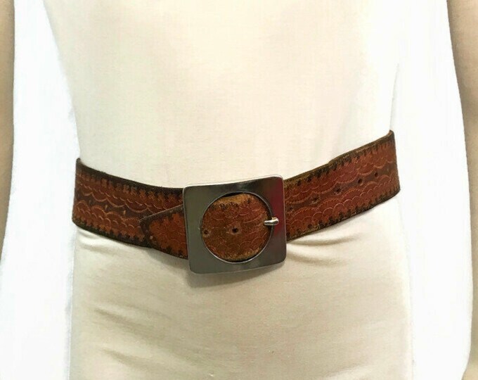 Vintage 60s Belt Mod Metal Chrome Buckle Brown Leather Tooled - Etsy 60s belt
