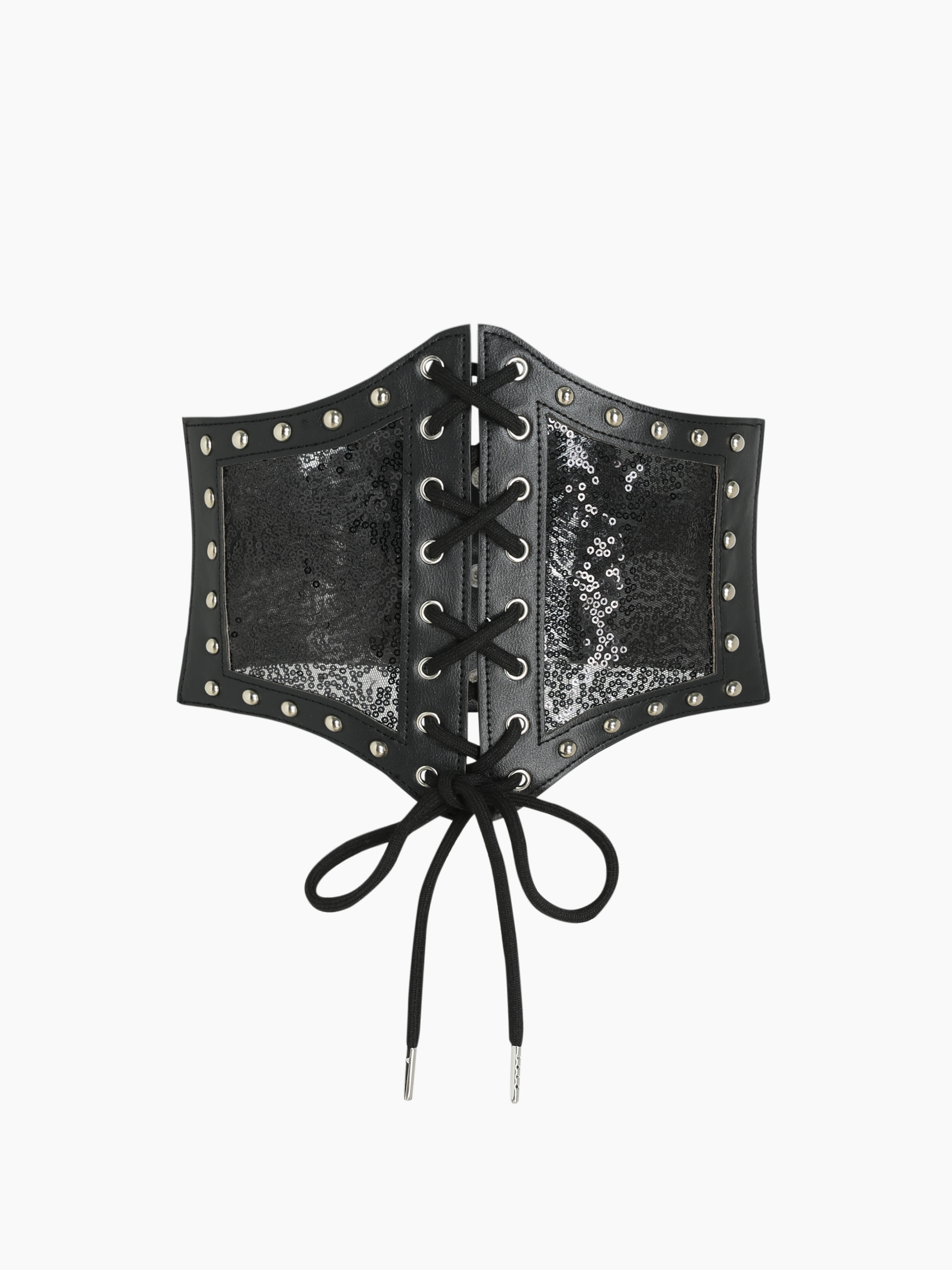 Lace Up Sequin Corset Belt - Cider sequin corset belt