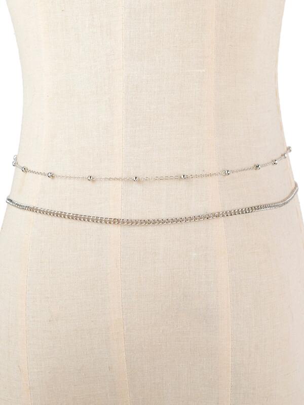Two Women's Silver-color Waist Chain Set Personality Metal Wind Fashion Waist Chain Simple Bead thin waist chain