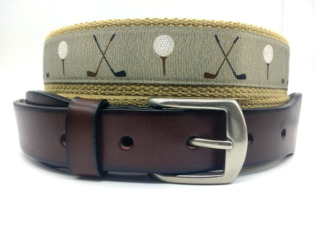 Men's Golf Belt/tapered Leather Tab Golf Ribbon Belt/preppy Golf Belt/ Top Grain Leather Golf rubber golf belt