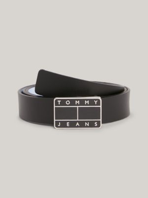 Reversible Logo Leather Belt | Black | Tommy Hilfiger reversible logo and leather belt