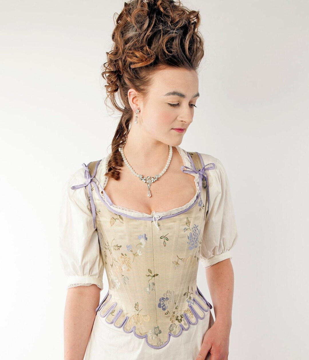 18th Century Stays, Corset, Made With Beige Floral Silk Fabric and a Purple Silk Binding - Etsy 18th century style corset