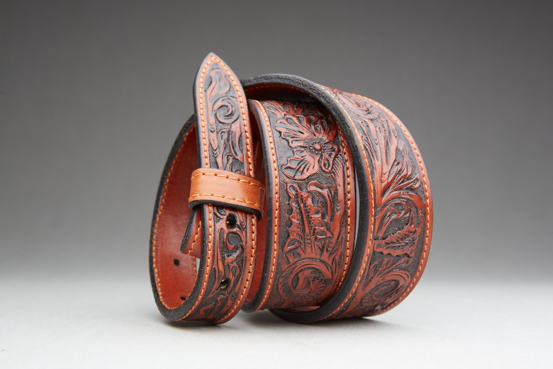 CHAMA Belt - Western, Oak Leaves, Hand Tooled, Fully Lined Full-grain Saddle Leather W/ Brass chamde ka belt