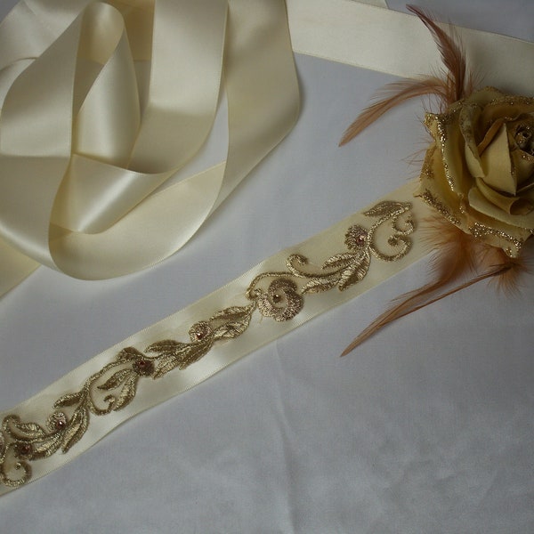 Pale Gold Belt, Gold Bridal Belt, Wedding Dress Belt, Gold Wedding Belt, Light Gold, Champagne