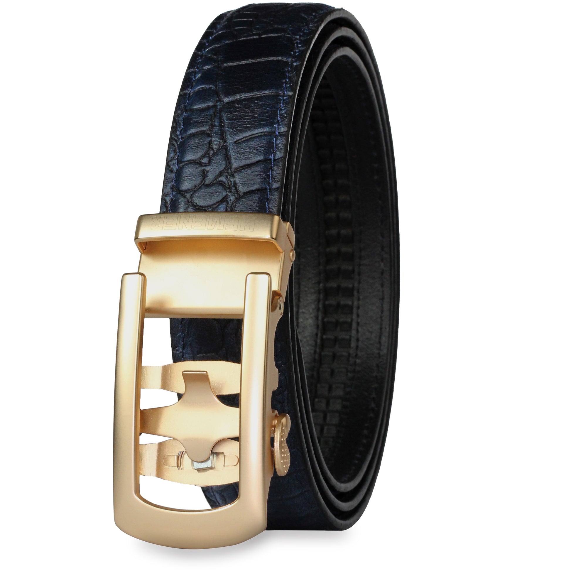 Hemener Men Metal Auto Grip Buckle Blue Croc Pattern Genuine Leather B hemener belt