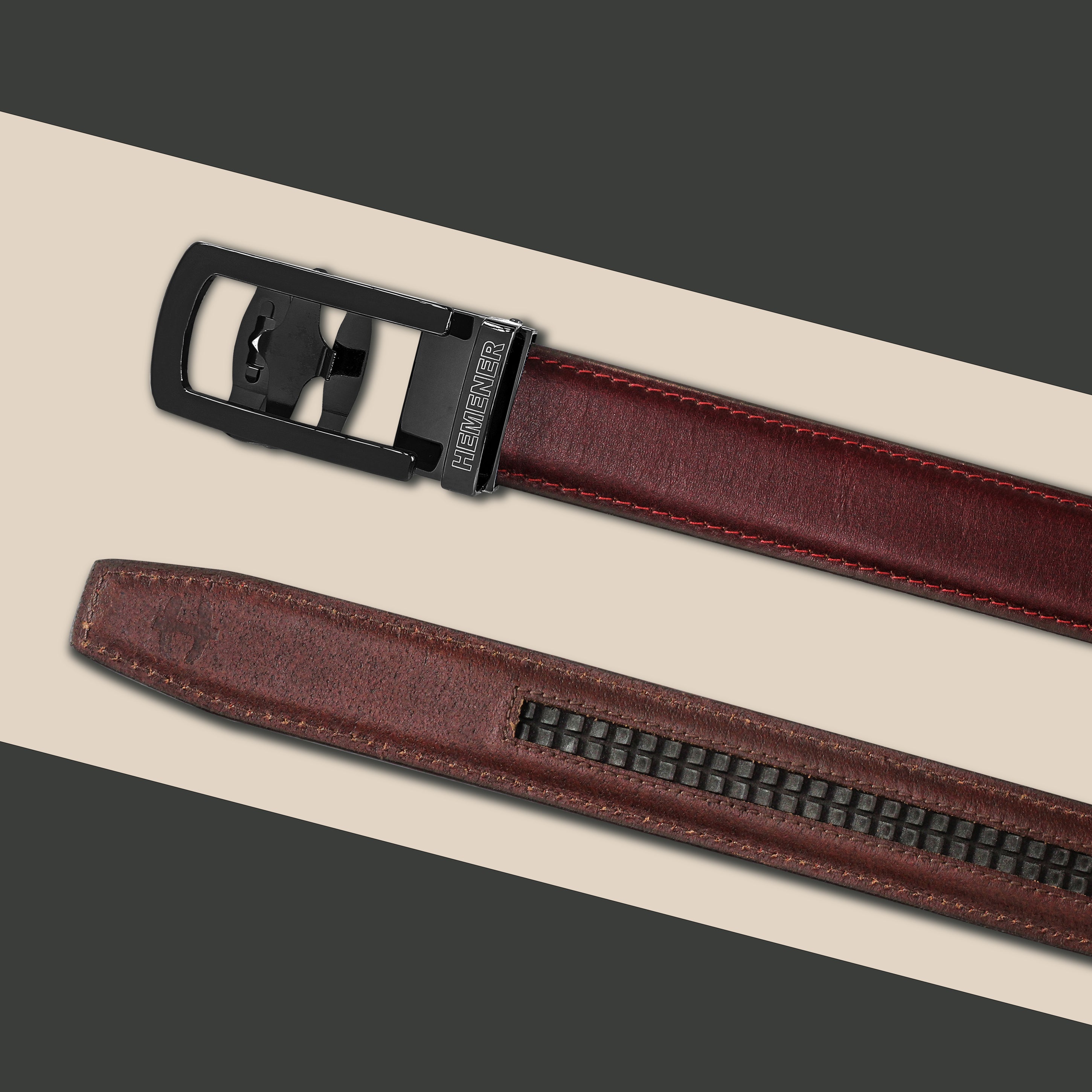 Hemener Men Metal Auto Grip Buckle Cherry Brown Genuine Leather Beltâ HEMENER hemener belt