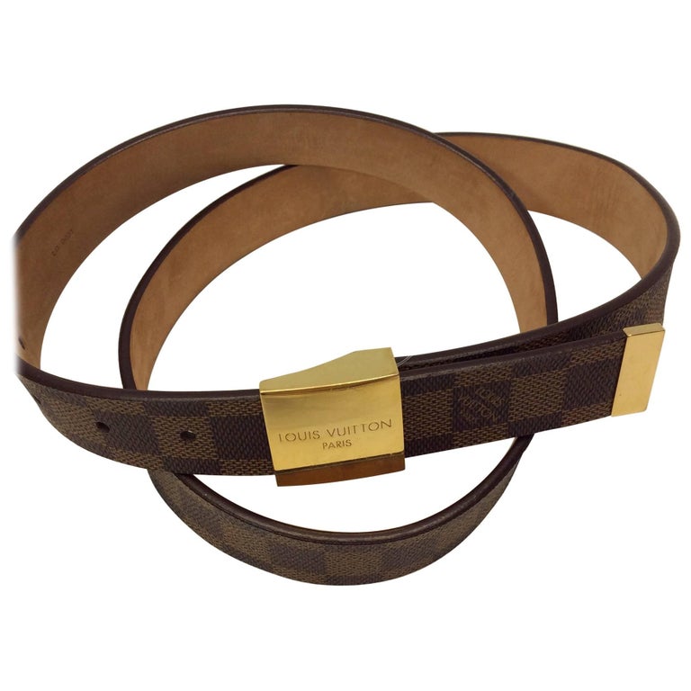 Louis Vuitton Brown Damier Belt with Gold Hardware For Sale at 1stDibs louis vuitton belt brown and gold