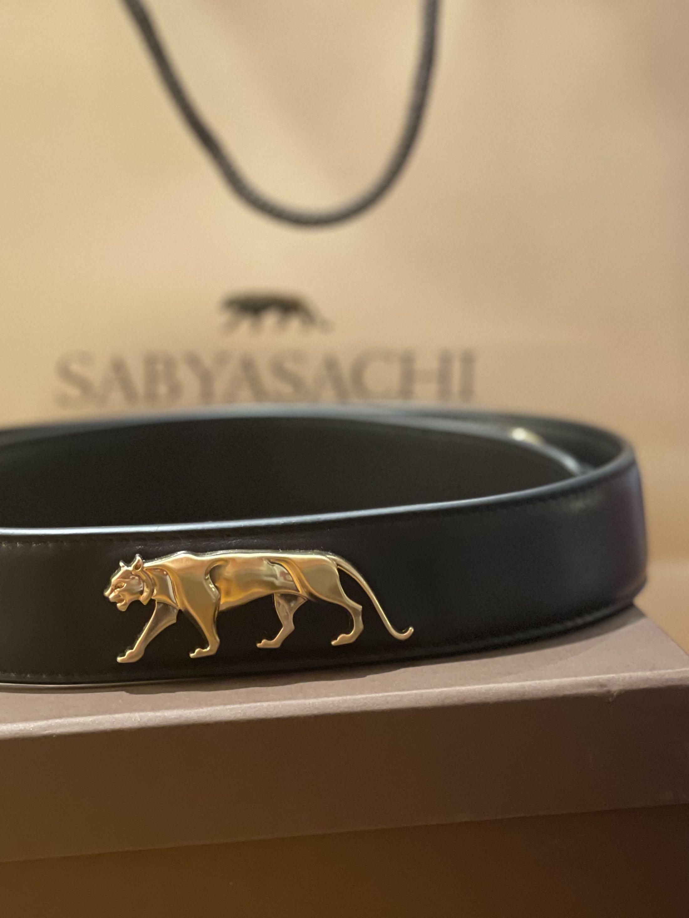 Genuine leather high waisted belt with 24k gold plated Sabyasachi bengal tiger hardware sabyasachi belt men