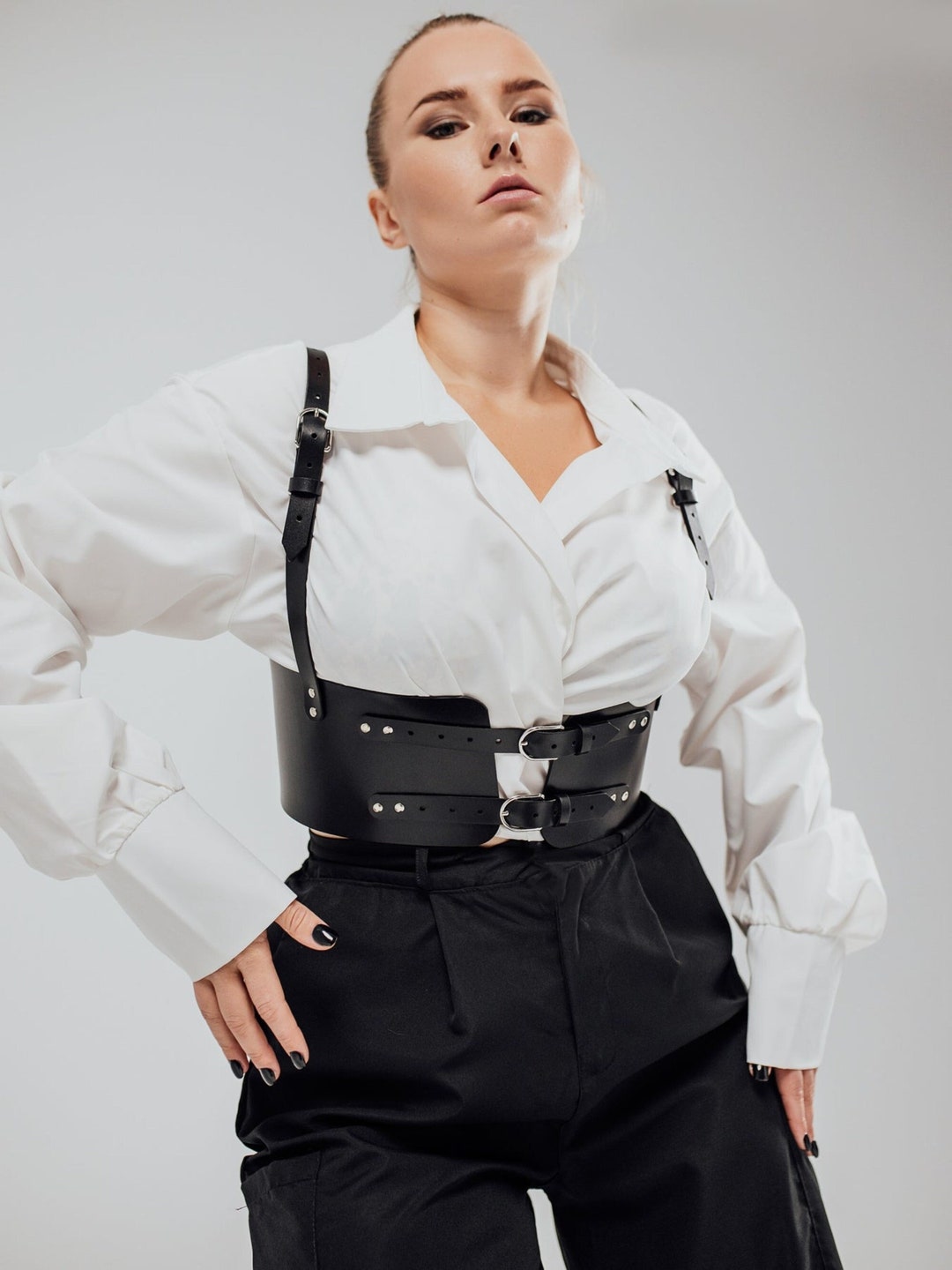 Leather Corset Harness Belt, Underbust Corset for Women, Wide Waist Belt With Shoulder Straps underbust harness corset