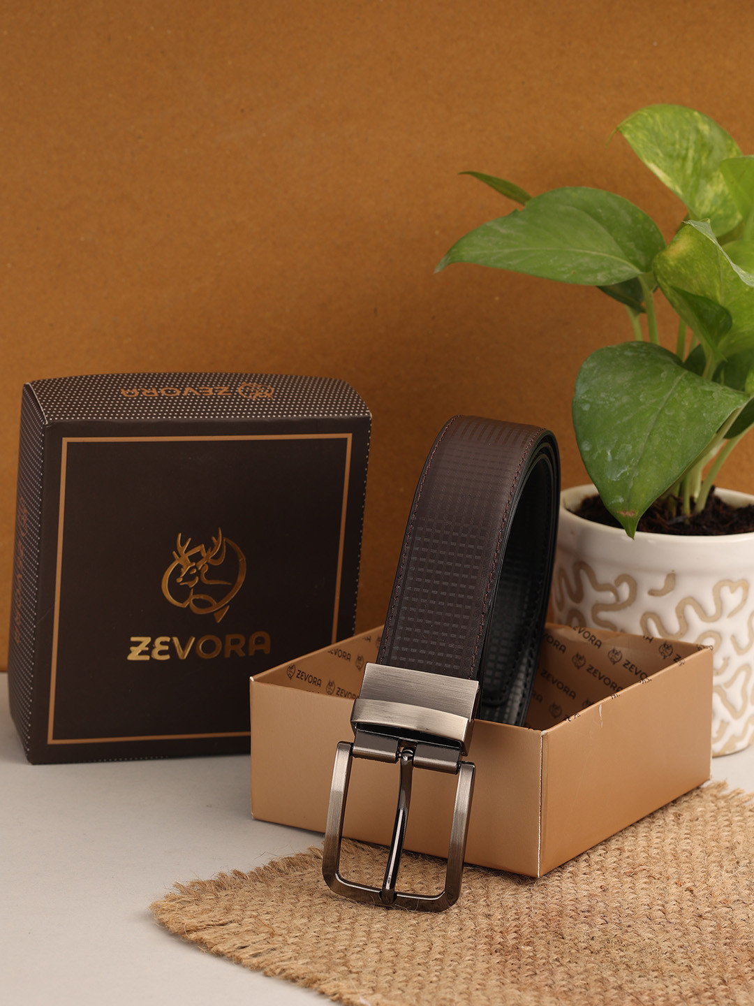 Buy ZEVORA Men Brown Textured Reversible Belt - Belts for Men 17049368 | Myntra zevora belt