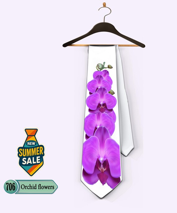 Orchid Flower Necktie: Printed Microfiber Satin Tie - Etsy purple orchid tie
