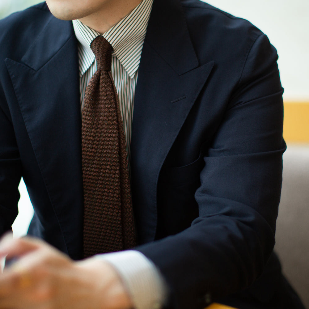 Dark Brown Diamond End Knitted Tie | THE GENTS LAB brown silk knit tie