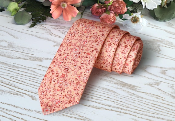 Floral Dusty Peach Tie - Wedding Necktie With Wildflowers, Muted Coral Necktie, Floral Skinny Tie, Wedding Peach Ties Delicate Blooms Tie - Etsy UK peach floral ties