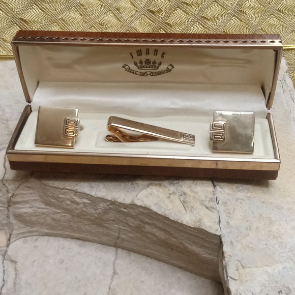 Vintage Swank Cufflinks and Tie clip set in box vintage swank tie tack