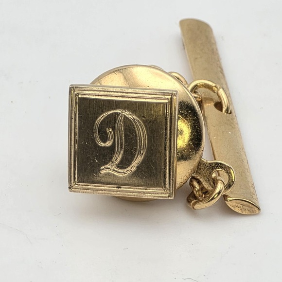 Vintage SWANK Tie Tack Old English Initial D 14k Yellow Gold Fill Lapel Hat Pin vintage swank tie tack