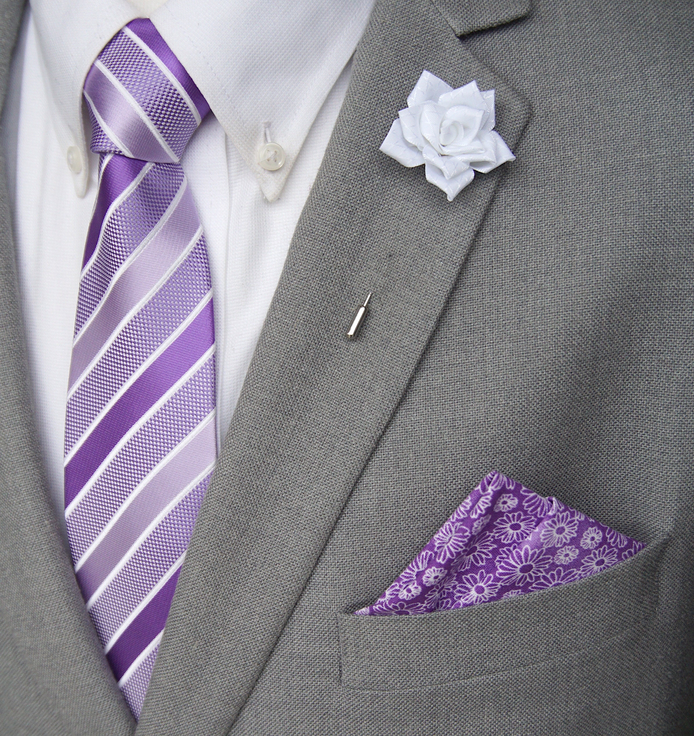 White Rose Lapel Pin / Purple Stripe Tie \u0026 Purple-white Flower Pocket Square Set / Men's Suit Accessories / Men's Tie / Pocket Square - Etsy gray purple tie