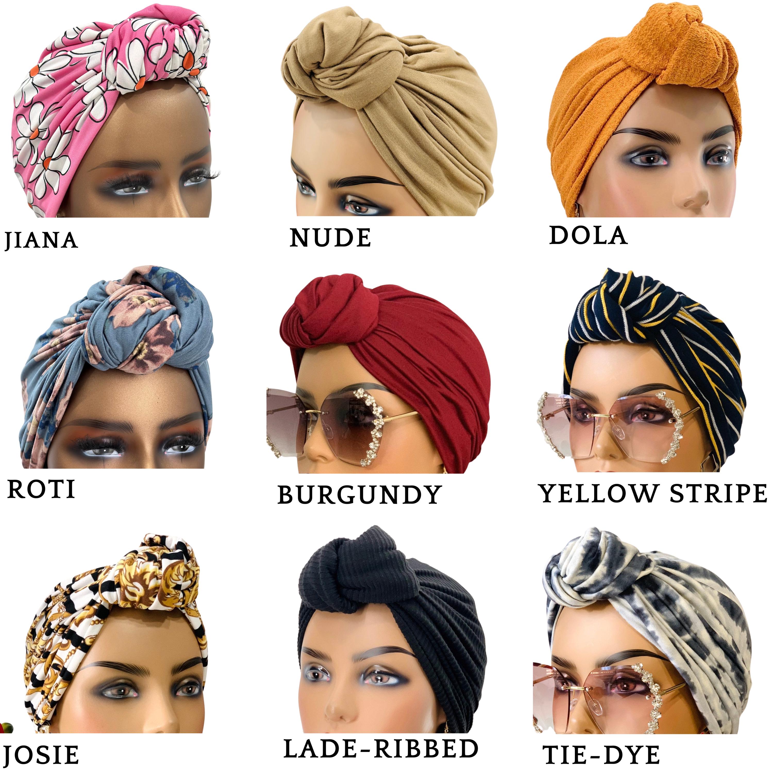Turban Headscarf Satin Lined Head Wraps Black Owned SATIN LINED Pretied Knotted Turban Head Wraps For pre tied head wraps black owned