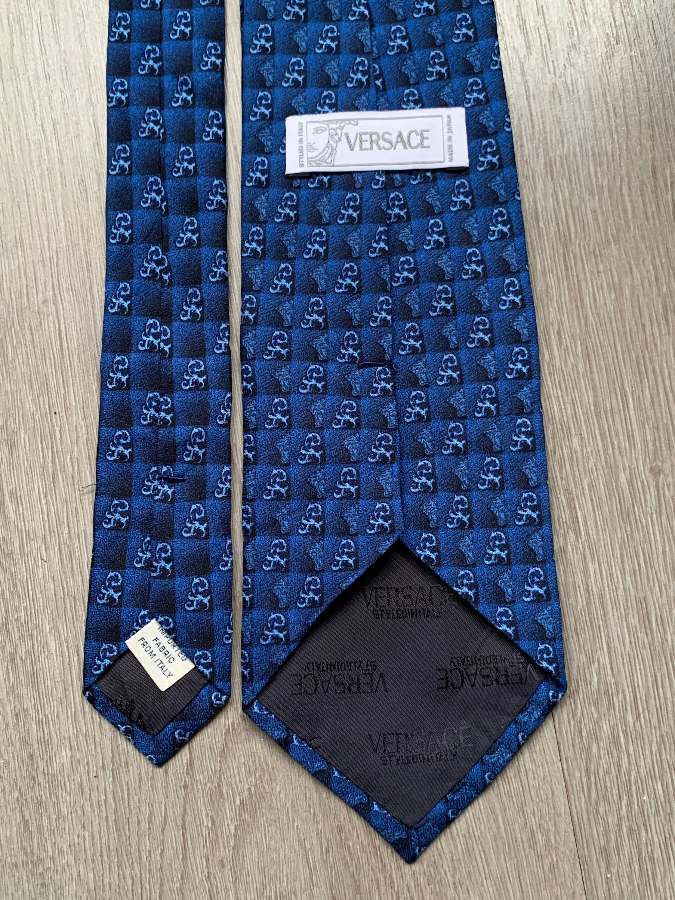 Vintage Gianni Versace Tie Medusa Head Pattern Silk Made In Italy 90s Blue Gold | eBay