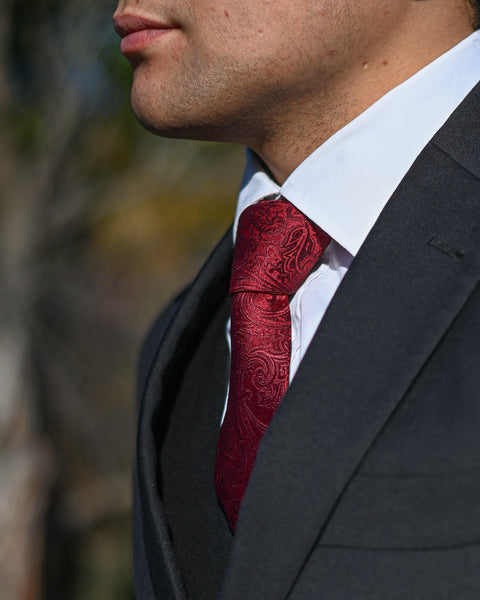 BLACK TIE SUIT HIRE | Crimson Satin Paisley Tie TO HIRE – Munns the Man's Store crimson tie