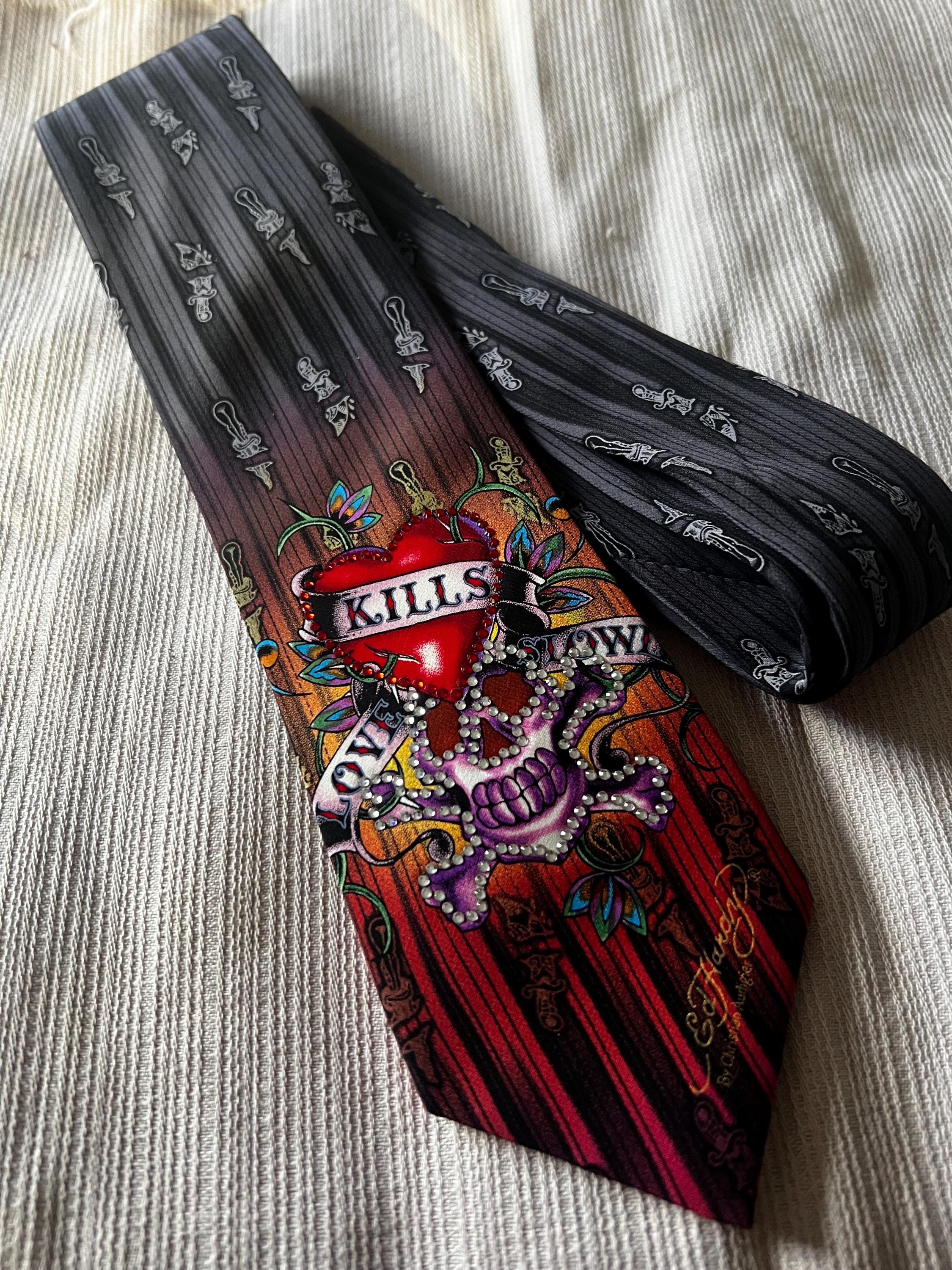 Ed Hardy Silk Tie by Christian Audigier, 58” Hand Made - Etsy Israel ed hardy tie