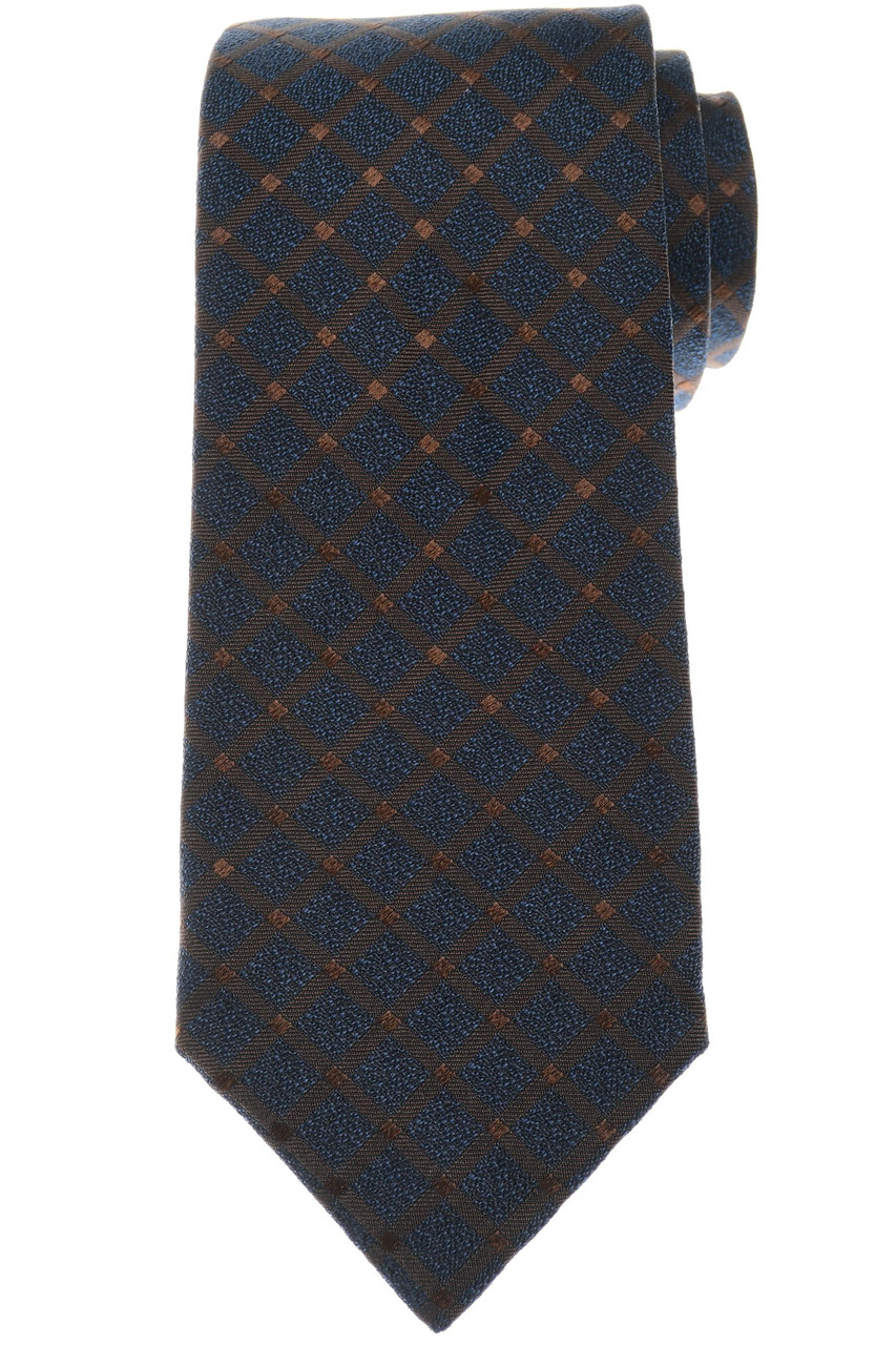 Isaia Napoli 7 Fold Silk Tie Blue Brown Check isaia 7 fold tie