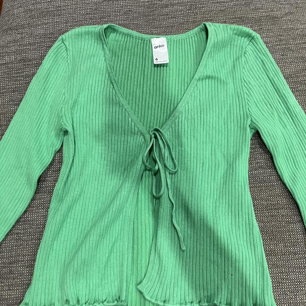 KMART Green ribbed tie front longsleeve top #green | Depop kmart neck tie
